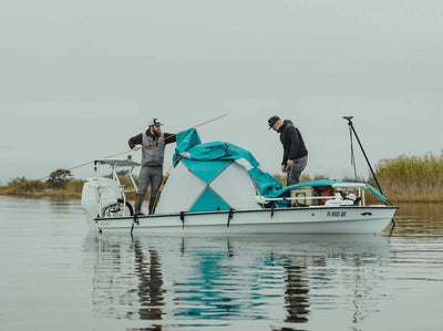 No permanently mounted hardware needed. OUTLIE tents are secured in place by a series of lightweight clamps and hooks. When stowed, your skiff is returned to the low-profile fishing machine it was designed to be.