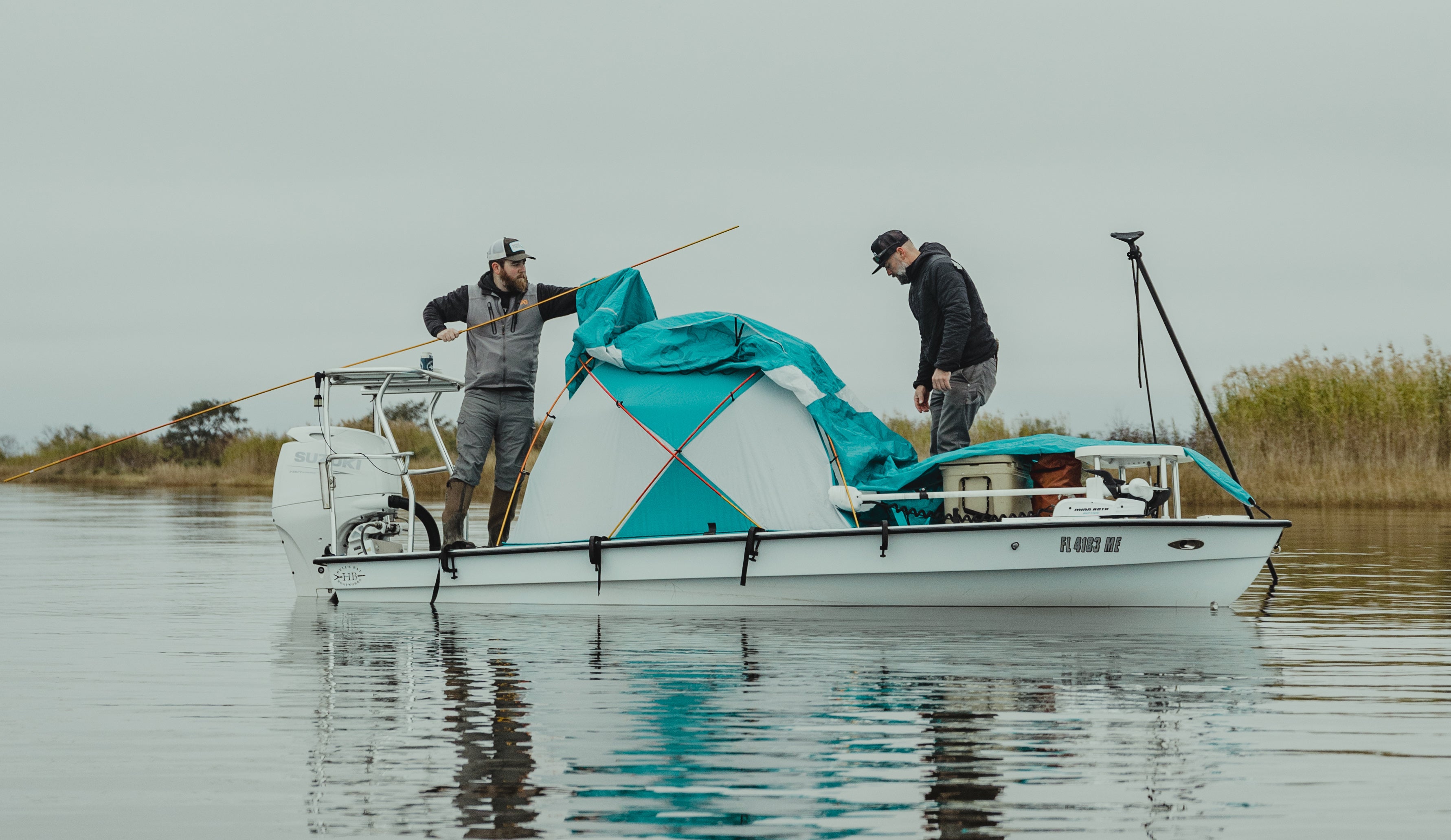 OUTLIE skiff tents have been engineered for camping in some of the most hostile environments in retrospect to insects as well as exposure to inclement weather. We have spent years developing an expedition weight tent that will over perform equally on a basic overnight to a full-blown mission like spending a month following the tarpon up theĀ Gulf Coast of Florida. OUTLIE skiff tents will allow Anglers to find their new frontier.