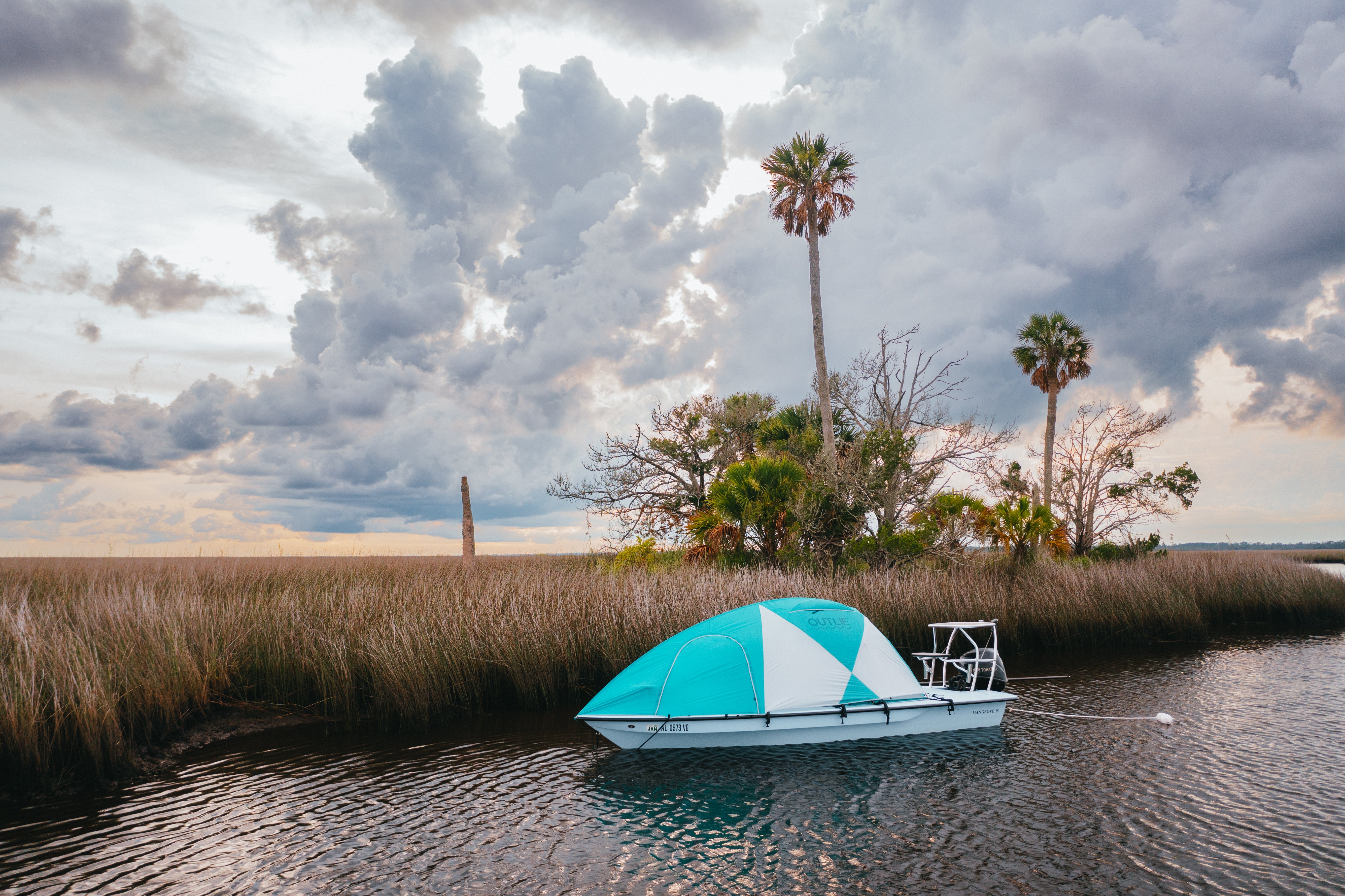 No permanently mounted hardware needed. OUTLIE tents are secured in place by a series of lightweight clamps and hooks. When stowed, your skiff is returned to the low-profile fishing machine it was designed to be.